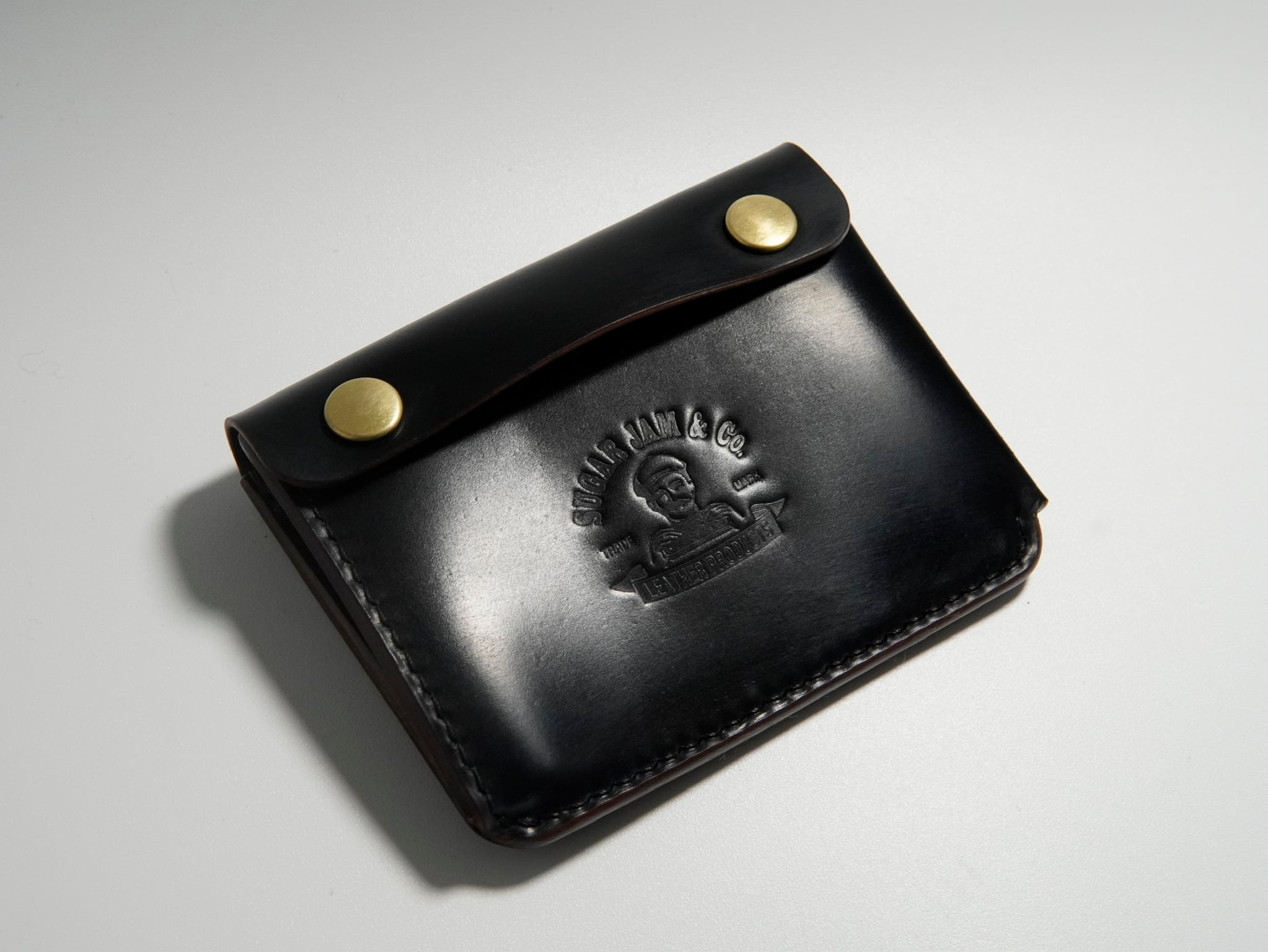 ブラックシェルコードバンを贅沢に使用し、内装とカードポケットにモカのクロムエクセルを配したミニウォレットです。