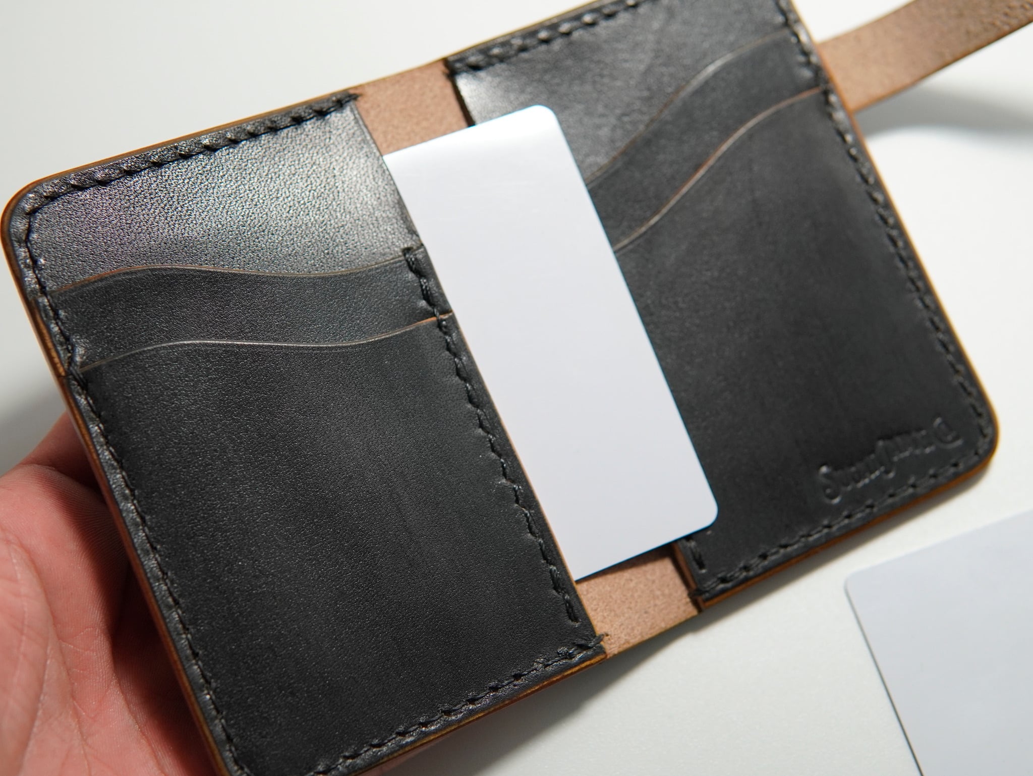 【栃木レザー】差し込みベルト カードケース / 柿渋鉄染め